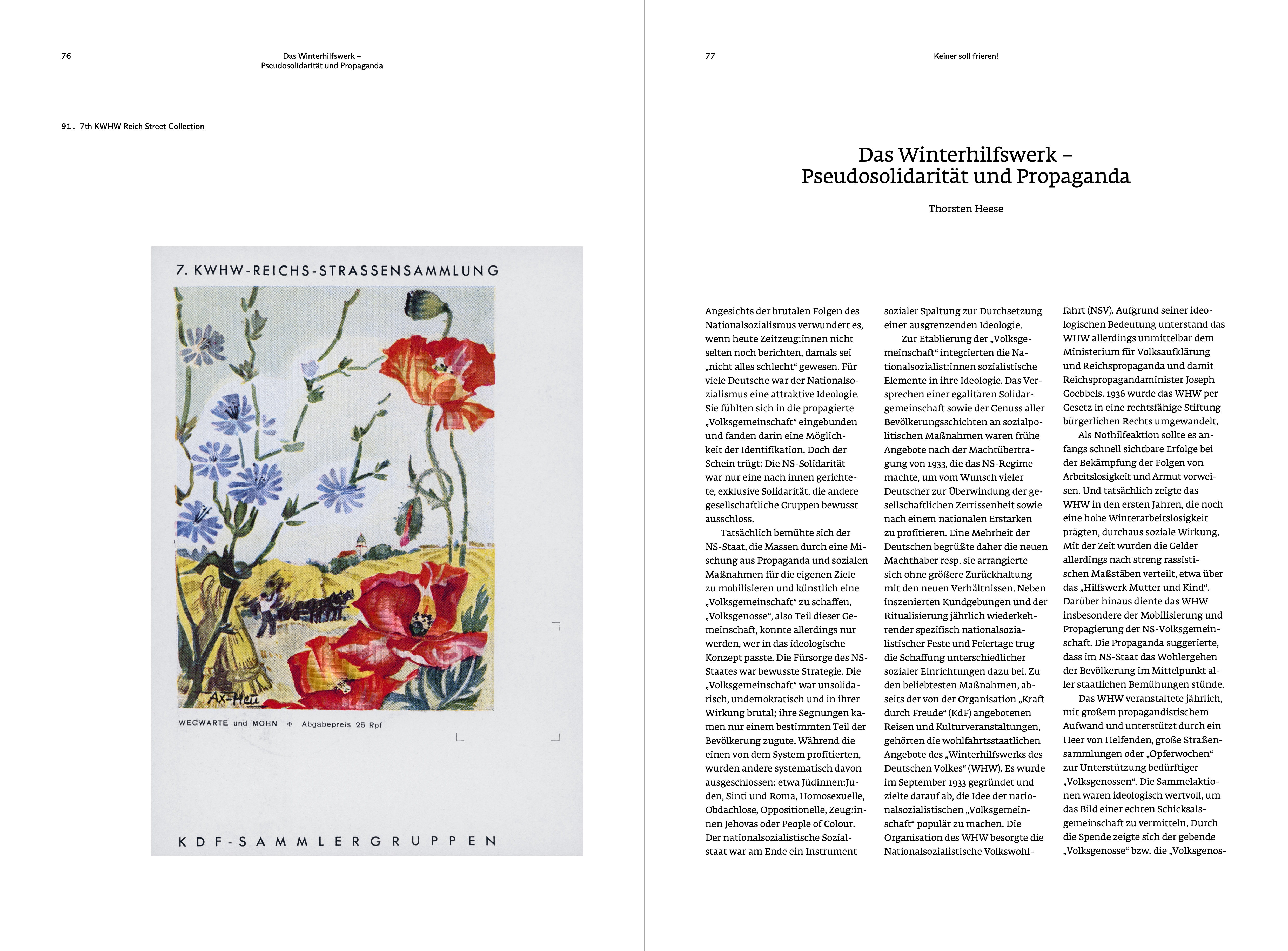 The book accompanying the exhibition presents a selection of over eighty new works. With a preface by Nils-Arne Kässens, an essay on the exhibition by the curator Mechthild Achelwilm, a contribution by Thorsten Heese on the "Winter Relief of the German People,” and a conversation between Sebastian Baden and the artist.