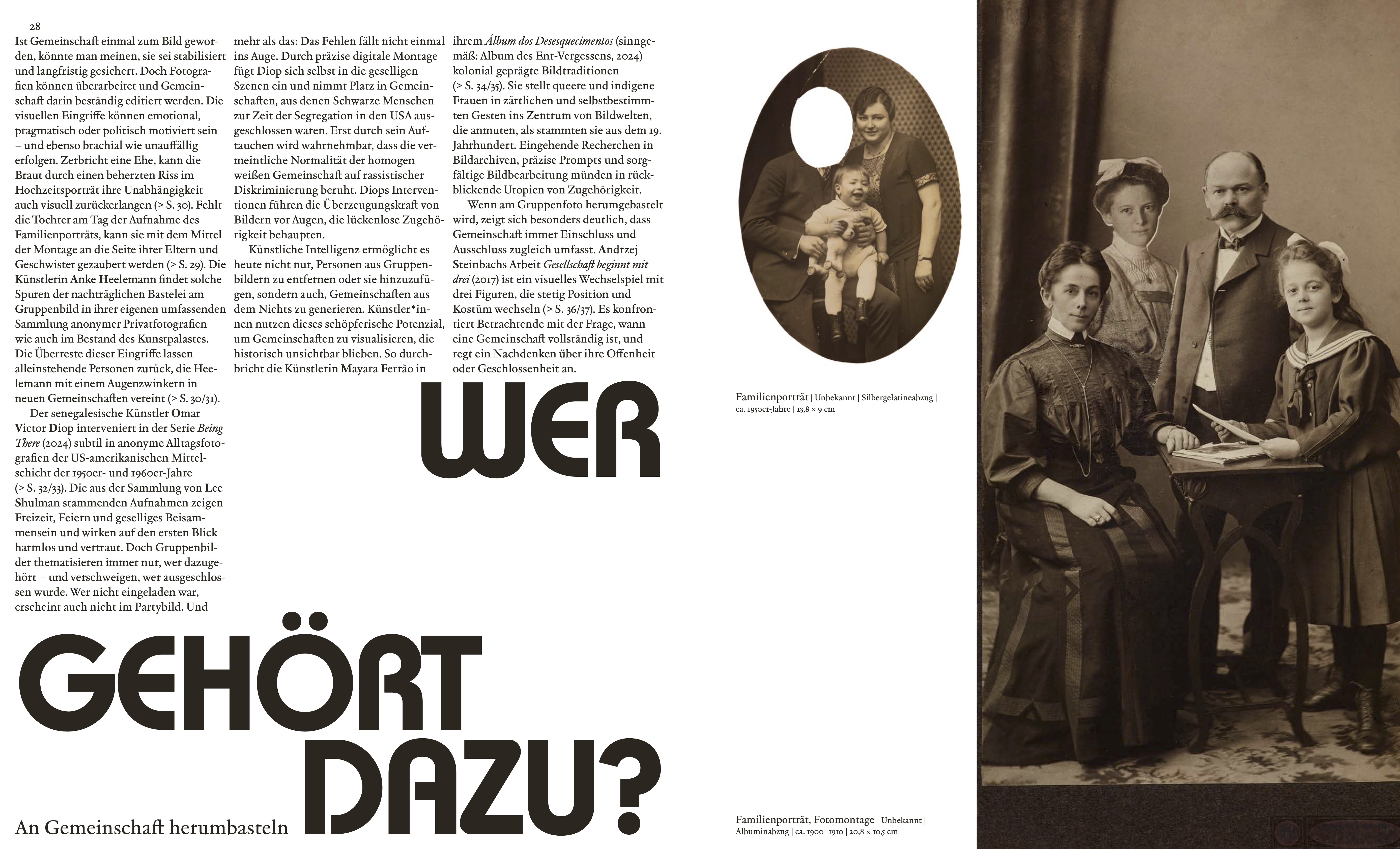 The soccer club, the family, the political collective—humans strive for a sense of belonging. Ever since the invention of photography, the medium has not only captured this feeling, it has also variously served to strengthen it or call it in question. Photography lets us demonstrate that we are part of something bigger. Or it can be used to draw boundaries and exclude those who do not belong to our community.