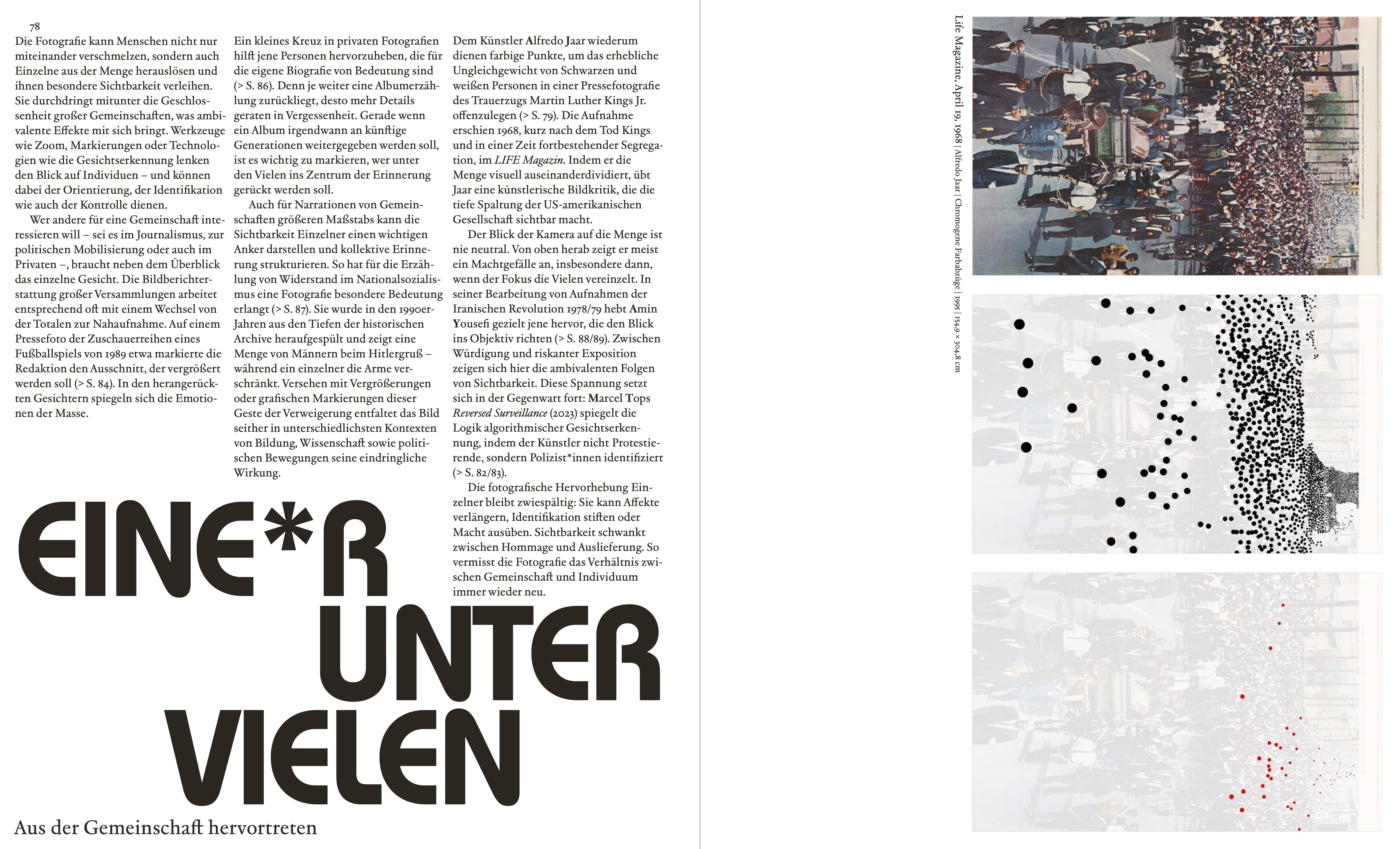 Community sheds light on the multifaceted relationship between photography and community in history and the present. The publication gathers examples of vernacular, commercial, and fine-art photography that explore identification with community as the glue that holds society together. Works by Viktoria Binschtok, Marianne Brandt, Cihan Çakmak, Yvon Chabrowski, Omar Victor Diop, Mayara Ferrão, Juliane Herrmann, Alfredo Jaar, Cate Lartey, Lilly Lulay, Ute Mahler and Werner Mahler, Ken Ohara, Heinrich Riebesehl, August Sander, Ramona Schacht, Giorgio Sommer, Andrzej Steinbach, Clemens von Wedemeyer, Amin Yousefi, and others employ subtle humor, express trenchant solidarity, or aim for analytical acumen. Essays by Linda Conze, Miriam Homer, Sara Kopelman, Mira Anneli Naß, Ulrike Pilarczyk, Jakob Schnetz, a conversation between Cate Lartey and Clarisse Akouala are outlining art-historical, photo-historical and ethnological perspectives.