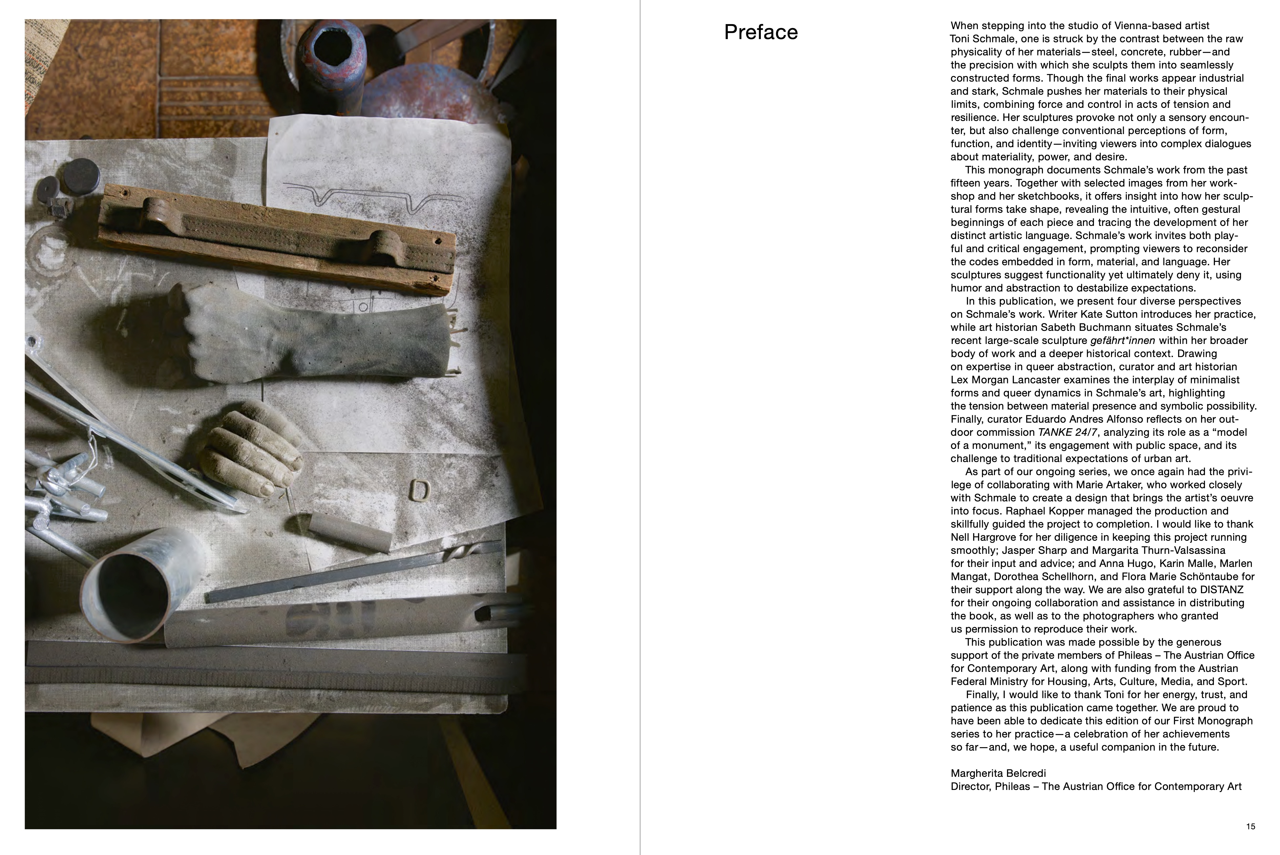 The publication in the series First Monographs—previous volumes have been dedicated to the oeuvres of Birke Gorm (2024), Christian Kosmas Mayer (2023), and Sophie Thun (2022)—offers insight into Toni Schmale’s studio and practice. Essays by curator Eduardo Andres Alfonso, based in New York; Sabeth Buchmann, professor of modern and postmodern art, Academy of Fine Arts Vienna; the scholar, professor, and curator Lex Morgan Lancaster, Cooper Union, New York; and the author and curator Kate Sutton reflect on Schmale’s wide-ranging oeuvre.