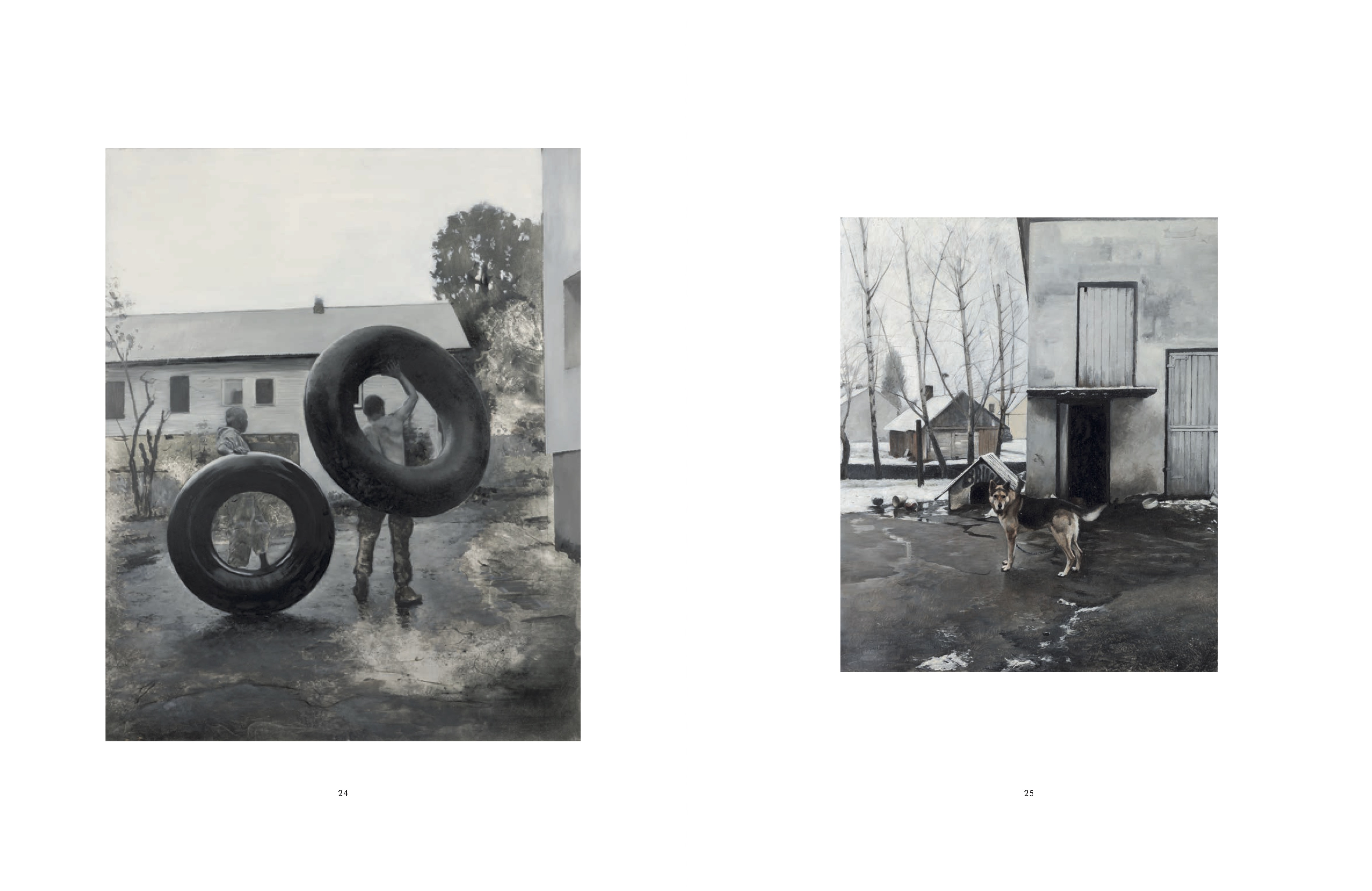 Seit über zehn Jahren widmet sich Karol Palczak (geb. 1987, Przemyśl, Polen; lebt und arbeitet in Krzywcza, Polen) in seinen Gemälden seinem Heimatort. Umgeben von Bergen und Tälern liegt Krzywcza nahe der Grenze zur Ukraine im Karpatenvorland, das einst von jüdischen, christlich-orthodoxen und katholischen Gemeinschaften bewohnt war. Heute ist das Gebiet von einer Stimmung der Leere und Stille geprägt. Palczaks Stillleben, Landschaften und Szenen mit wiederkehrenden Protagonist*innen offenbaren meist übersehene Details in der wirtschaftlich angespannten, zunehmend entvölkerten und militarisierten Umgebung des Dorfs.