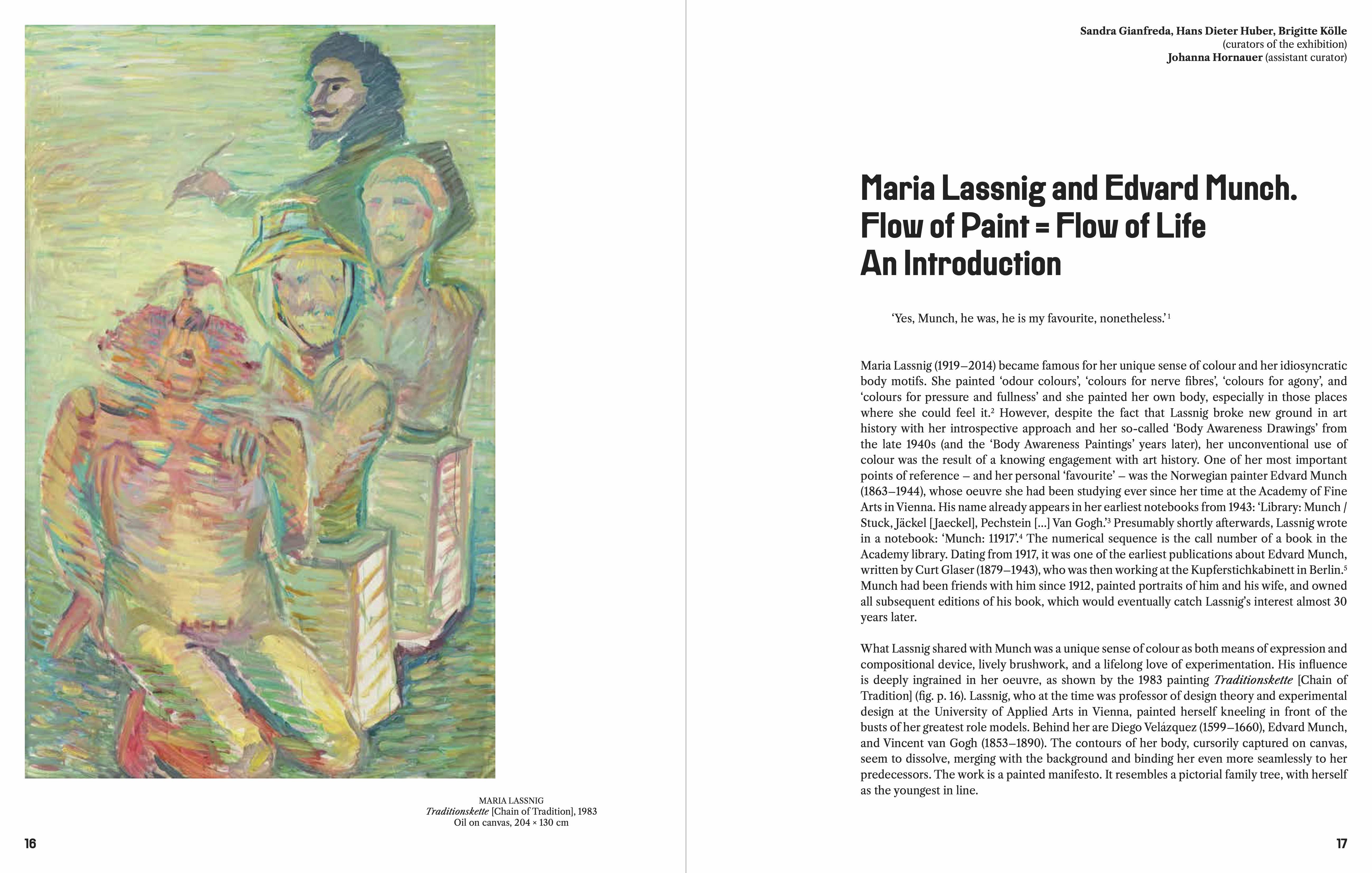 Die österreichische Künstlerin Maria Lassnig (geb. 1919 in Kappel am Krappfeld, gest. 2014 in Wien) und der norwegische Maler Edvard Munch (geb. 1863 in Løten, gest. 1944 auf Ekely in Oslo) haben eine schonungslose Auseinandersetzung mit dem eigenen Selbst gemeinsam. Beide verbindet ein einzigartiger Umgang mit Farbe als gestalterischem Mittel und starkem Ausdruckselement für Emotionen wie Trauer, Liebe, Einsamkeit, Angst, Freude, Schmerz oder auch für körperliche Wahrnehmungsebenen. Der reich bebilderte Band begleitet die große Doppelschau der beiden Ausnahmekünstler*innen. Anlässlich der Ausstellungen in der Hamburger Kunsthalle und im Kunsthaus Zürich bietet er einen intimen Einblick in ihre Werke und zeigt Parallelen wie auch Differenzen zwischen zwei der wohl renommiertesten Positionen der jüngeren Kunstgeschichte. Mit Texten von Andreas Eriksson, Sandra Gianfreda, Sheela Gowda, Johanna Hornauer, Hans Dieter Huber, Siri Hustvedt, Brigitte Kölle, Maria Lassnig, Edvard Munch, Johanna Ortner, Ulrike Ottinger, Ashley Hans Scheirl, Luc Tuymans und anderen.
