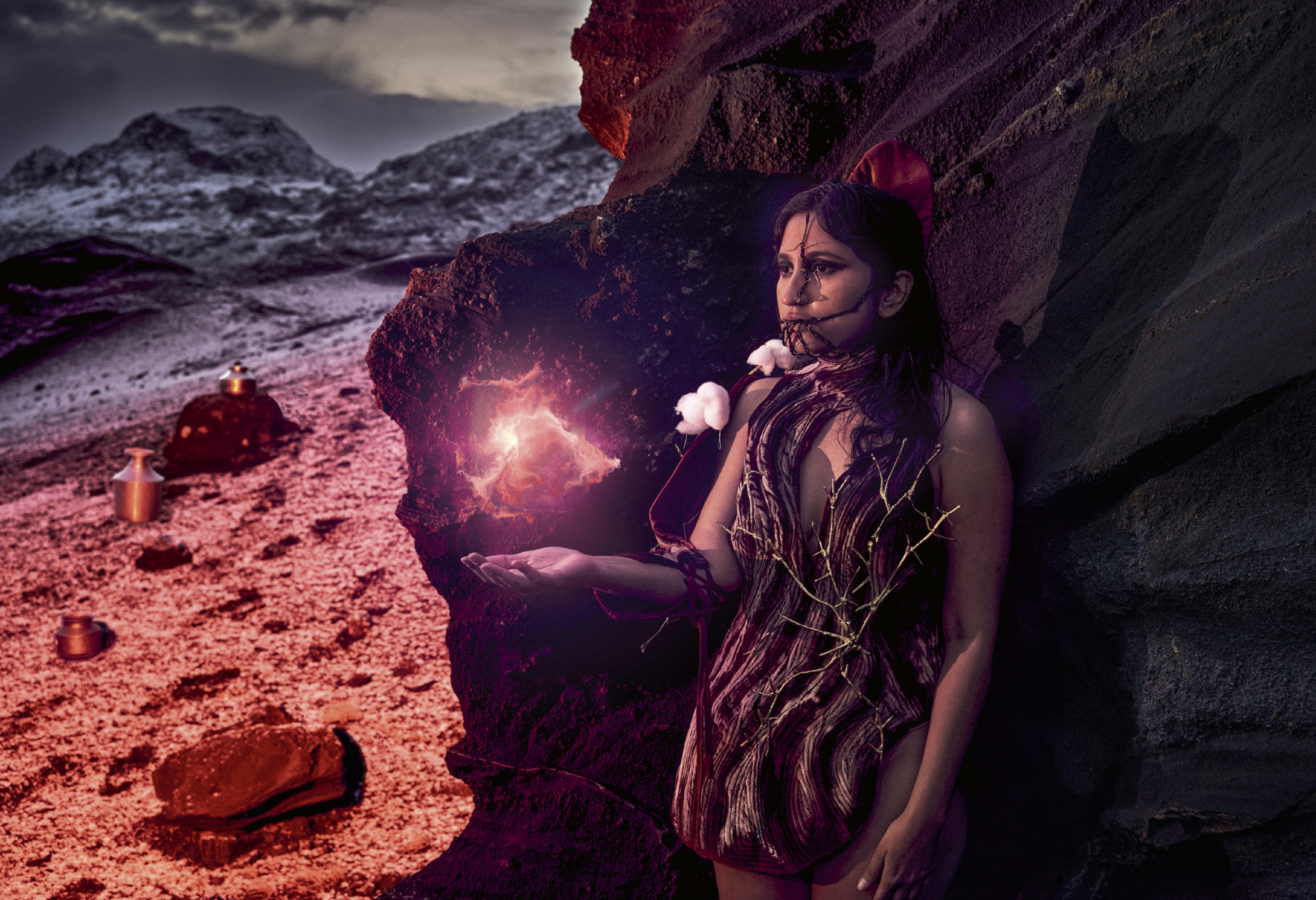Die Künstlerin und Aktivistin Poulomi Basu (geb. 1983 in Kolkata; lebt und arbeitet in London) entwirft in ihrer künstlerischen Praxis spekulative Zukunftsvisionen, die zugleich die Gegenwart ihrer Protagonist*innen reflektieren und Möglichkeiten der Selbstermächtigung und des Widerstands erkunden. Im Mittelpunkt ihrer Arbeit stehen die enge Verflechtung ökologischer und feministischer Fragestellungen sowie die Geschichten von Frauen, die wie sie aus dem Globalen Süden stammen und an den Rand der Gesellschaft gedrängt werden. Basu verbindet Fotografie mit Film, Virtual Reality und Performance. Dabei nutzt sie das aktivistische Potenzial dieser Medien, um auf Ausgrenzung und geschlechterspezifische Gewalt aufmerksam zu machen.